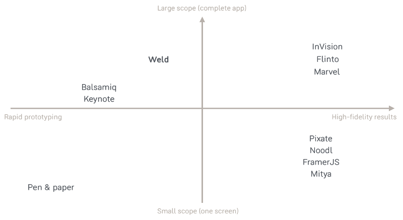 - Rapid prototyping of a complete app to understand the flow, testing with real users. Here’s where our own app, Weld, shines.
