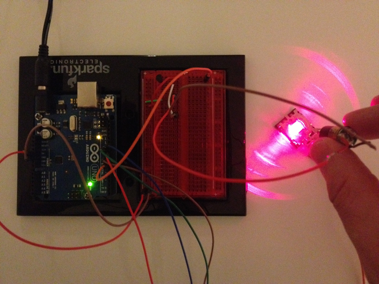 Laser project phase 2; now with a moving lens mechanism dissected from a DVD drive (inspired by Ljudmila’s instructable: http://www.instructables.com/id/Micro-LASER-Show-with-a-CD-Lens-Mechanism/). Yes, now I’m rummaging garbage for spare parts…