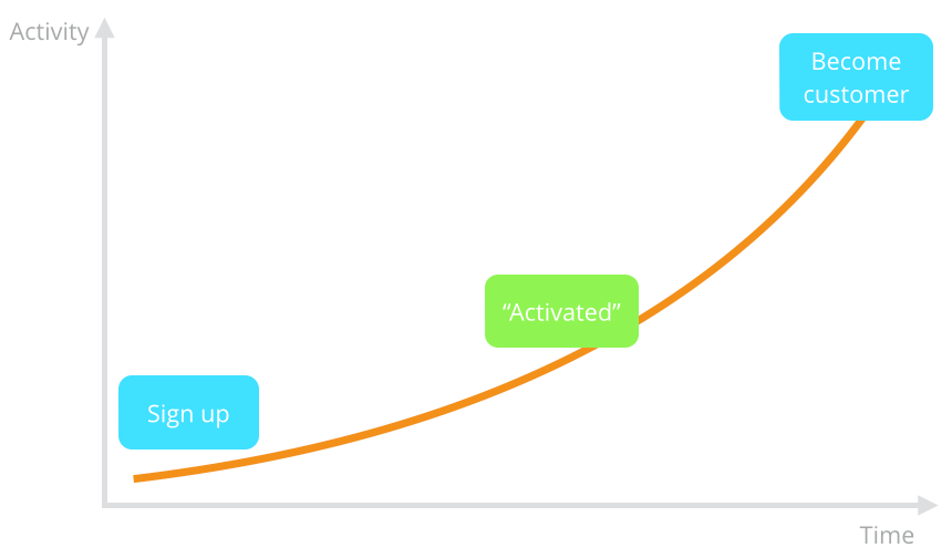 Activation is pseudo-event that should happen to a user about half-way between signing up and becoming a paying customer.
